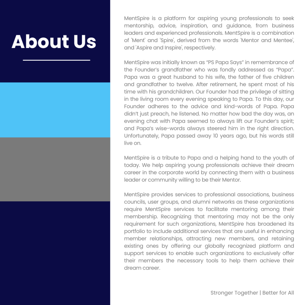 MentSpire offers tailored services to assist professional associations, business councils, user groups, and alumni networks create an exclusive community that goes beyond what they currently offer. Our services are designed to promote career development, member engagement, and other benefits that will help your community thrive. Let us help you take your community to the next level and provide your members with the support and resources they need to succeed.